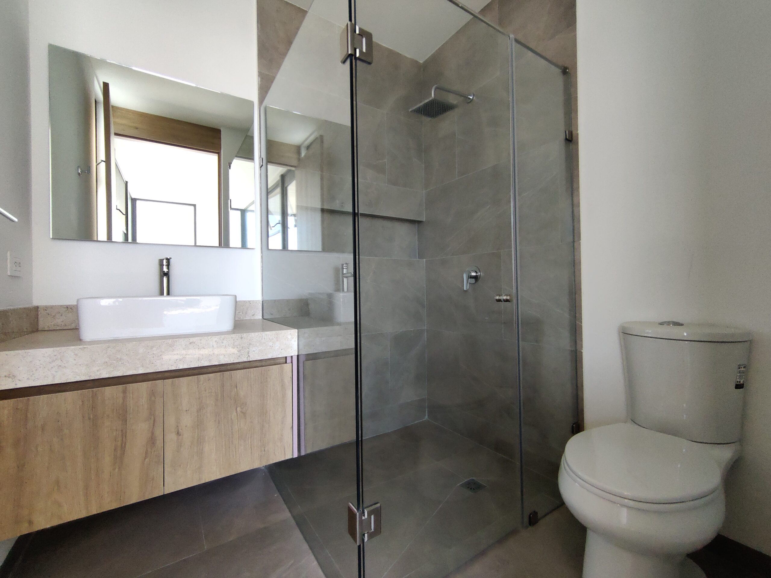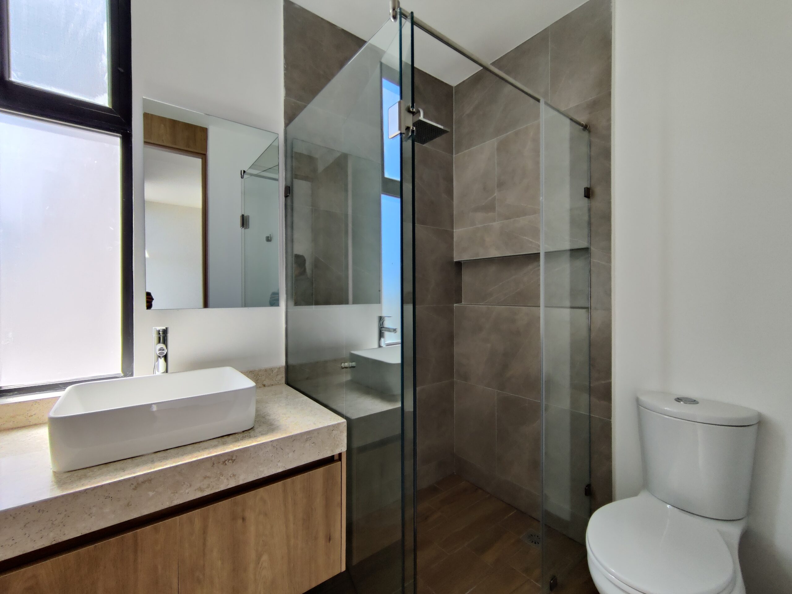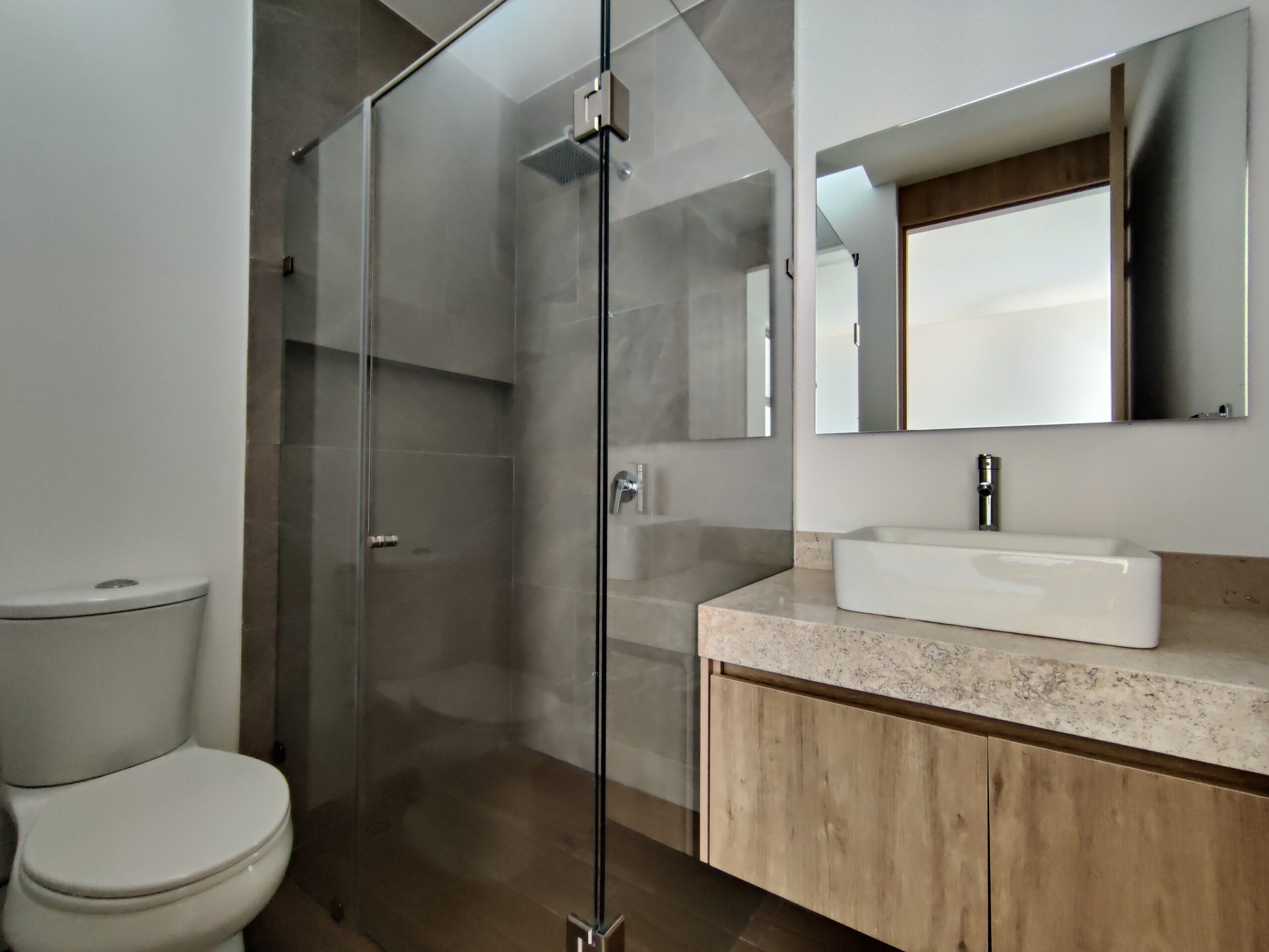 Área de Sanitario y Regadera independientes vidrio templado